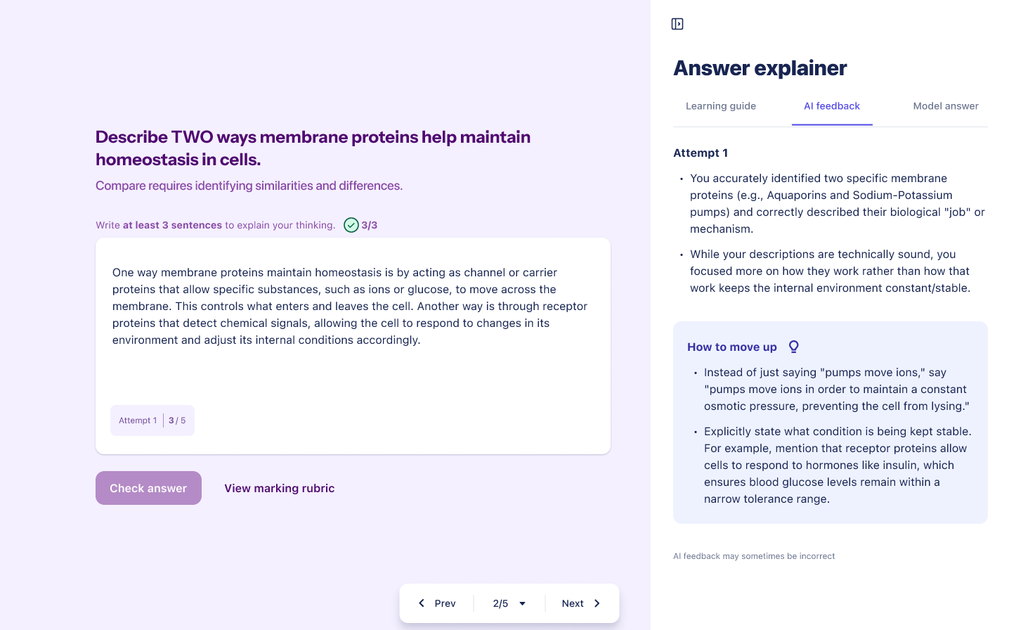 - AI Feedback: Specific guidance on how to improve your response and move up to the next marking level